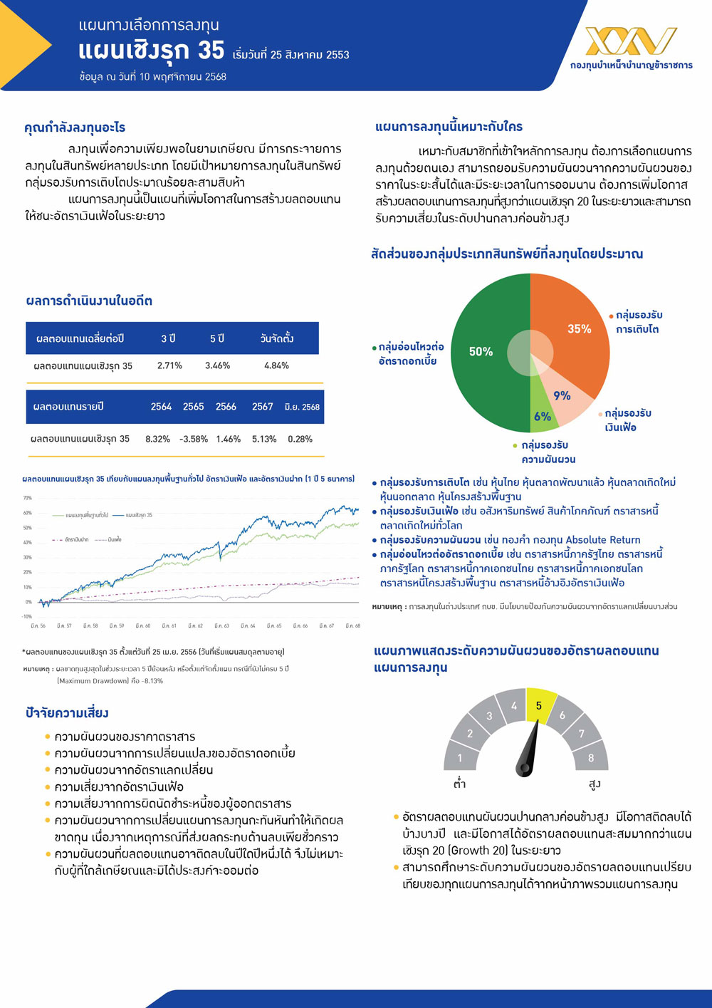 แผนการลงทุนนี้จึงเหมาะสำหรับผู้ลงทุนที่ยังมีระยะเวลาในการลงทุนค่อนข้างยาว หรือผู้ที่มีความรู้ความเข้าใจ ในเรื่องการลงทุนพอสมควร เป็นผู้ที่ยอมรับความเสี่ยงได้สูงกว่าผู้ที่เลือกลงทุนในแผนอื่น ๆ