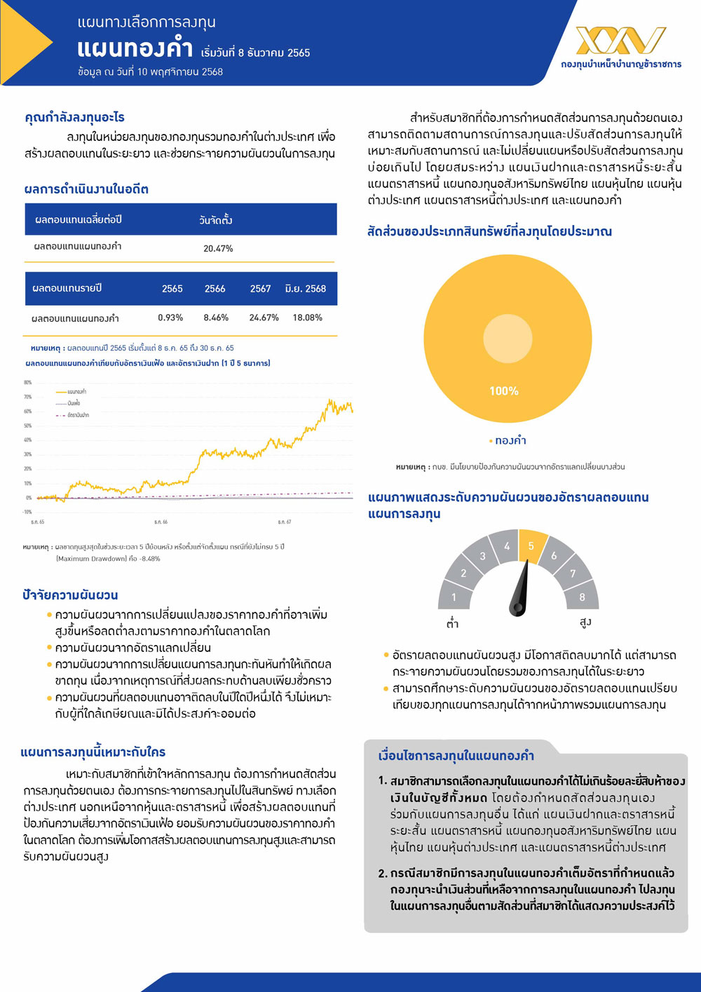 เป็นแผนที่ลงทุนในหน่วยลงทุนของกองทุนรวมทองคำในต่างประเทศ มีวัตถุประสงค์เพื่อสร้างผลตอบแทนในระยะยาว และช่วยกระจายความเสี่ยงในการลงทุน