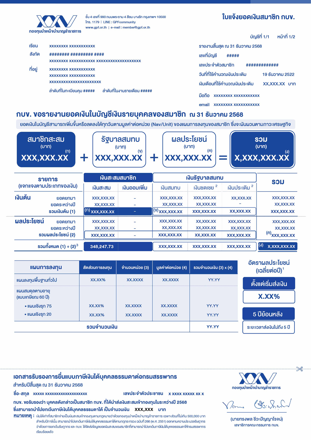 และ ศูนย์บริการข้อมูลสมาชิก กบข. โทร. 1179