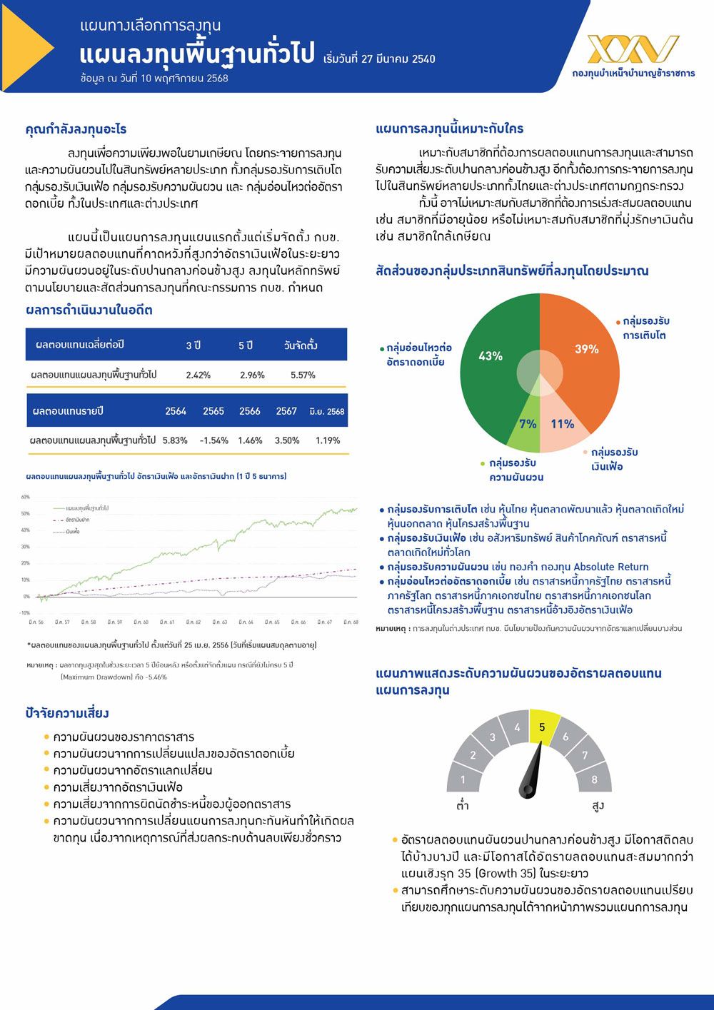เหมาะสำหรับสมาชิกที่มีระยะเวลาในการลงทุนที่นานพอสมควร เหมาะสำหรับสมาชิกส่วนใหญ่โดยทั่วไป ซึ่งยอมรับความเสี่ยงระดับปานกลางและคาดหวังผลตอบแทนในระยะยาวที่สูงกว่าอัตราเงินเฟ้อ