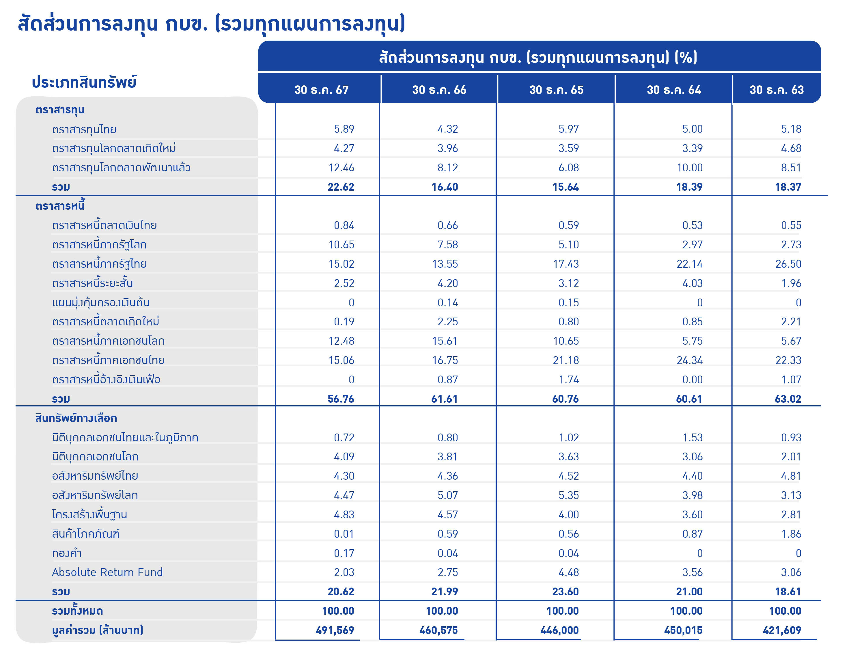 การลงทุนในแต่ละแผนการลงทุนของสมาชิก