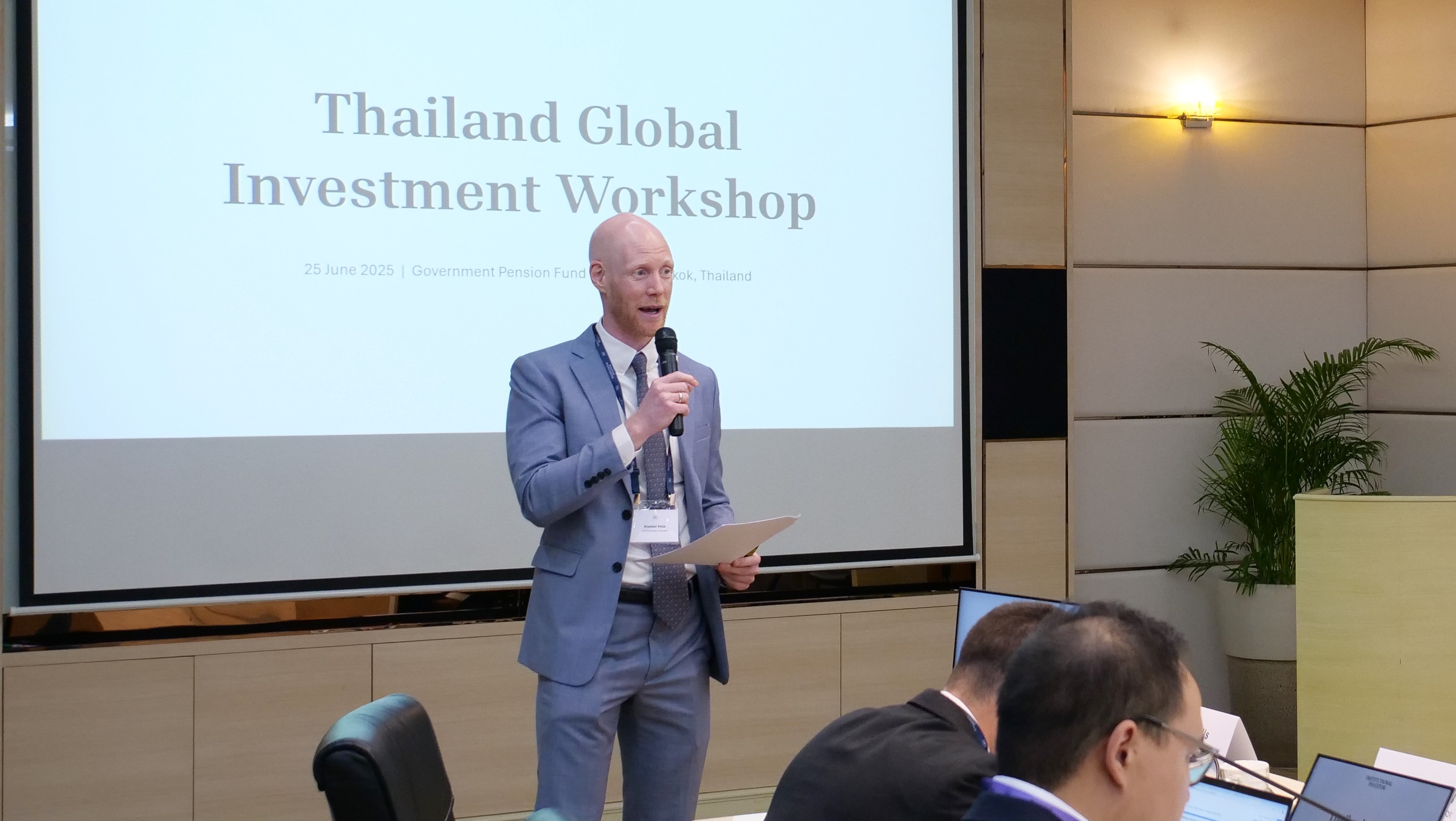 กองทุนบำเหน็จบำนาญข้าราชการ (กบข.) ร่วมกับ Institutional Investor จัดงาน Thailand Global Investment Workshop 2025 โดยมีนายทรงพล ชีวะปัญญาโรจน์ เลขาธิการคณะกรรมการกองทุนบำเหน็จบำนาญข้าราชการ (กบข.) และ Mr. Alastair Hills, Head of Asia-Pacific, Institutional Investor ให้เกียรติกล่าวต้อนรับ ภายในงานมีผู้บริหารและเจ้าหน้าที่ด้านกลยุทธ์การลงทุนของ กบข. พร้อมด้วยผู้เชี่ยวชาญด้านการลงทุนจากบริษัทชั้นนำทั้งในและต่างประเทศ มาร่วมแบ่งปันประสบการณ์และแลกเปลี่ยนมุมมองเชิงกลยุทธ์ ภายใต้บริบทการลงทุนท่ามกลางสถานการณ์ความผันผวนทางด้านภูมิรัฐศาสตร์และเศรษฐกิจทั่วโลก ครอบคลุมประเด็นสำคัญ อาทิ แนวโน้มเศรษฐกิจมหภาคและการจัดสรรสินทรัพย์ การบริหารสินทรัพย์ลงทุนตามภูมิภาค และมุมมองการลงทุนใน Private Market เพื่อให้ผู้เข้าร่วมงานสามารถนำข้อมูลไปประยุกต์ และปรับแนวทางการลงทุนให้สอดรับกับเป้าหมายระยะยาวอย่างมีประสิทธิภาพ