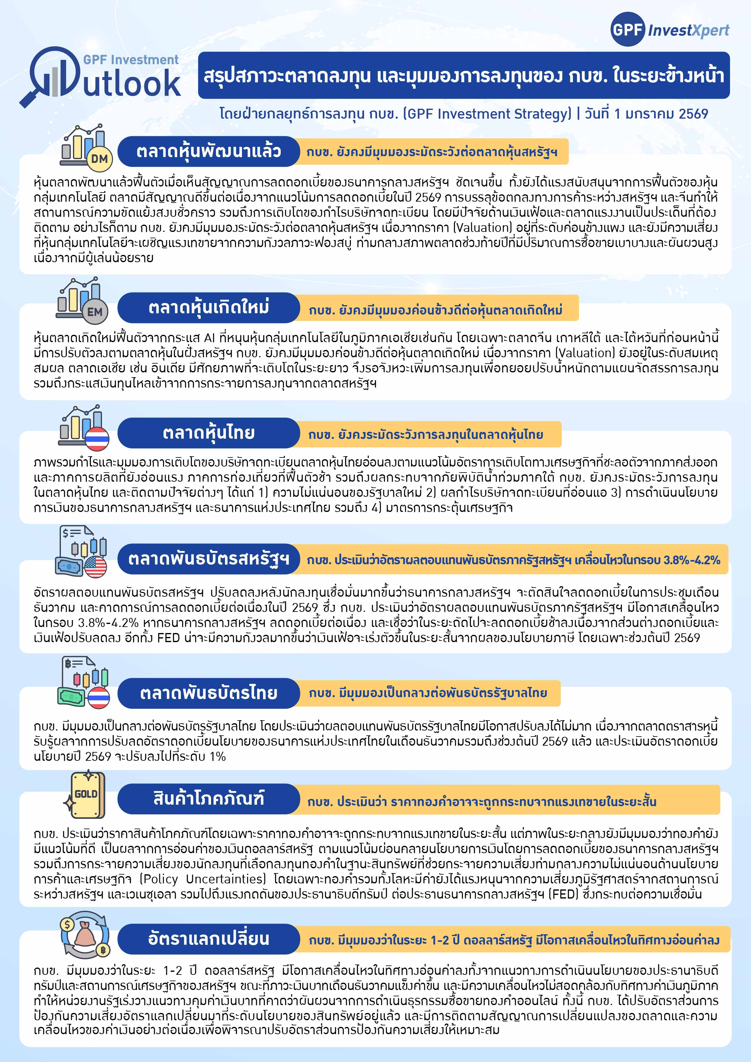 สรุปสภาวะตลาดทุนและมุมมองการลงทุนของ กบข. ในระยะข้างหน้า (ณ 1 มกราคม 2569)