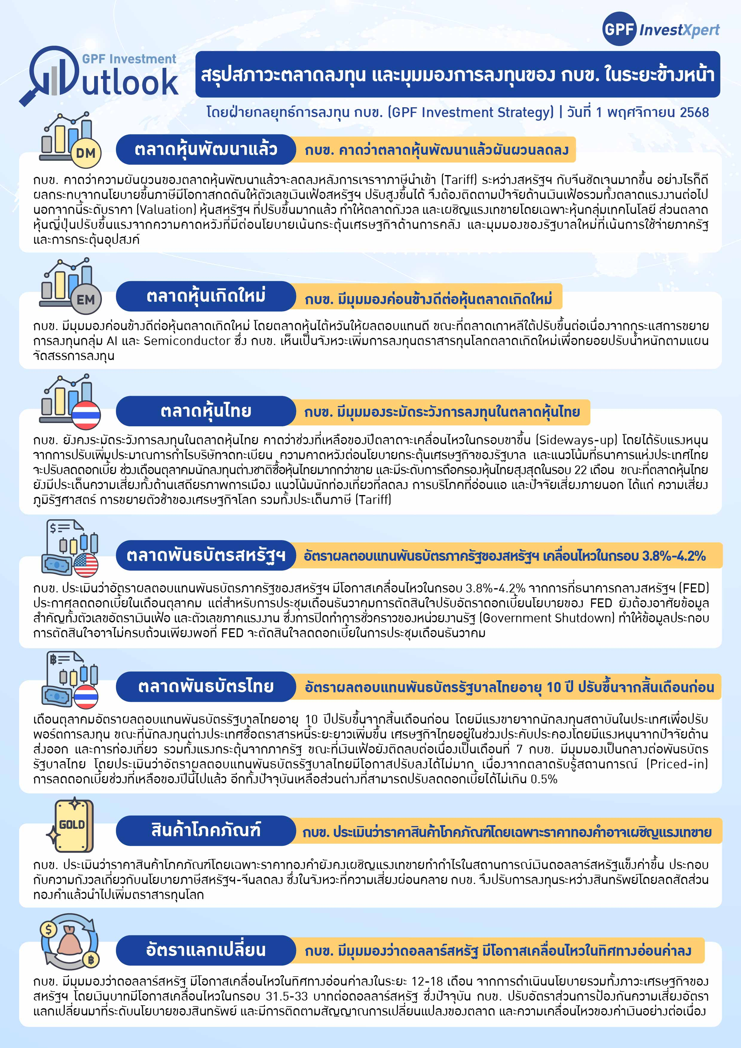 สรุปสภาวะตลาดทุนและมุมมองการลงทุนของ กบข. ในระยะข้างหน้า (ณ 1 พฤศจิกายน 2568)